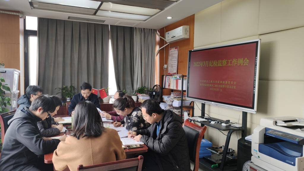 3月1日下午,学校纪委监察专员办公室在学校厚德楼6002室召开2022年3月纪检监察工作例会。会议由学校党委常委、纪委书记、监察专员周航同志主持,全体专职纪检监察干部参加会议。