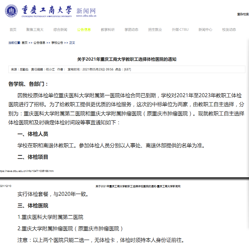 党史学习教育活动开展以来,机关二支部将“教职工体检个性化选择”作为党史学习教育活动“我为群众办实事”重点推进项目,会同学校采购与招投标管理中心、后勤处等部门制定细化招标文件,通过公开招标方式,遴选重庆大学附属肿瘤医院、重庆医科大学附属第二医院作为教职工体检选择单位,并于2021年6月实施,满足了教职工对体检的个性化需求,教职工普遍比较满意,圆满完成“教职工体检个性化选择”项目。