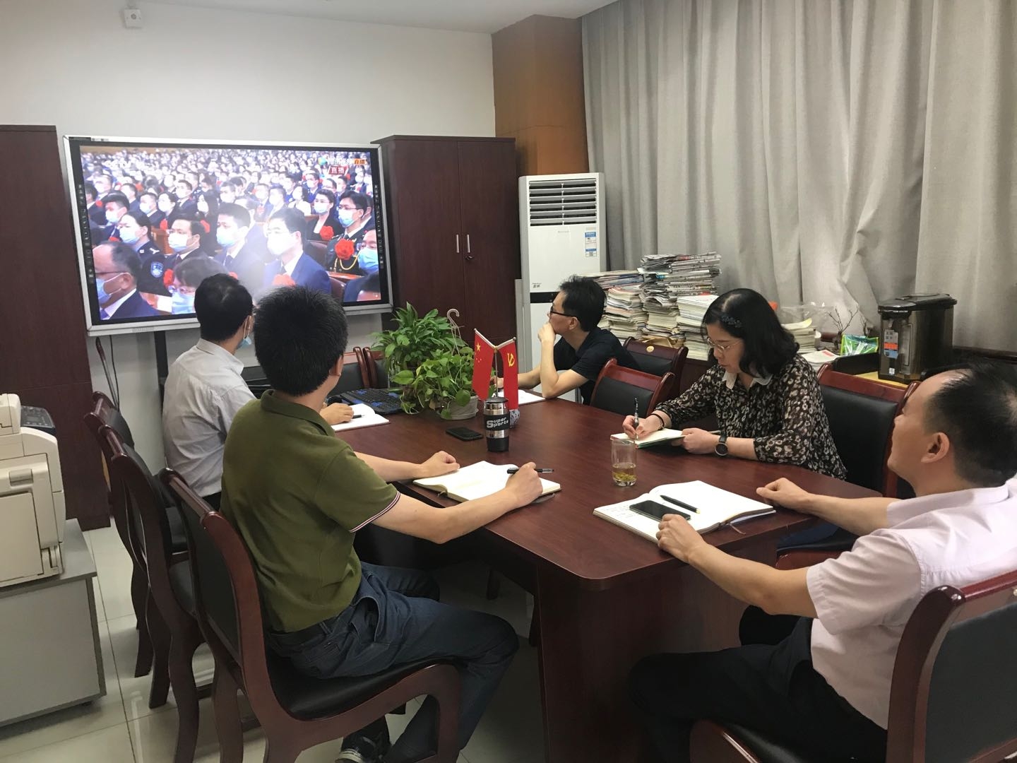 上午9:40,纪检监察室全体同志早早集中到6002室准备收看表彰大会。