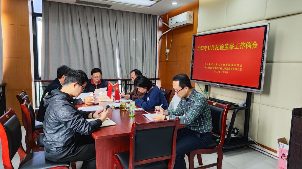 11月1日上午,学校纪委监察专员办公室在学校厚德楼6002室召开2022年11月纪检监察工作例会。会议由学校党委常委、纪委书记、监察专员周航同志主持,全体专职纪检监察干部参加会议。