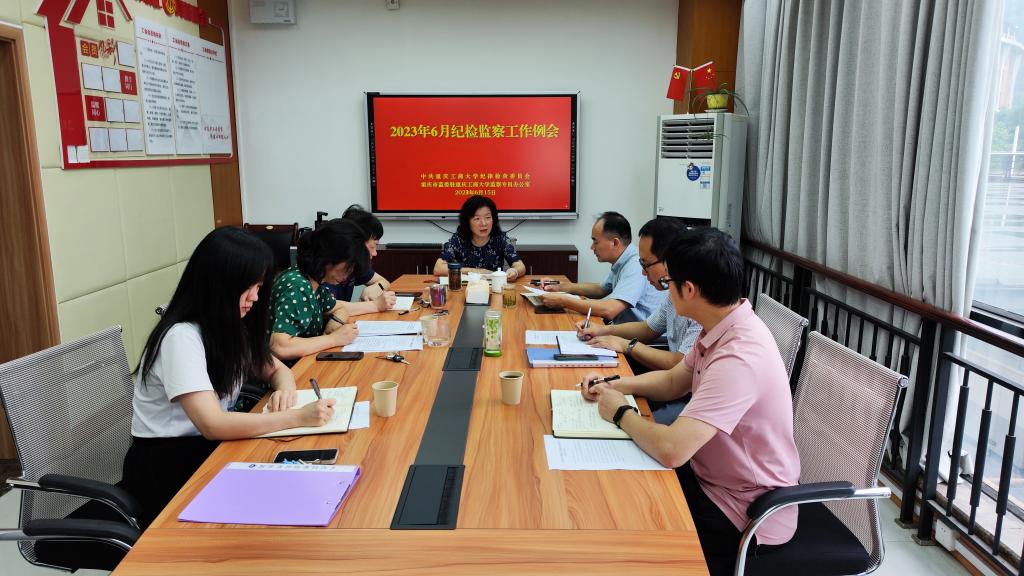 6月15日上午,学校纪委监察专员办公室在学校厚德楼6002会议室召开2023年6月纪检监察工作例会。会议由学校党委副书记宋豫同志主持,全体在校专职纪检监察干部参加会议。