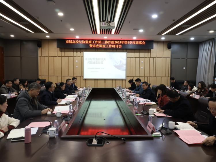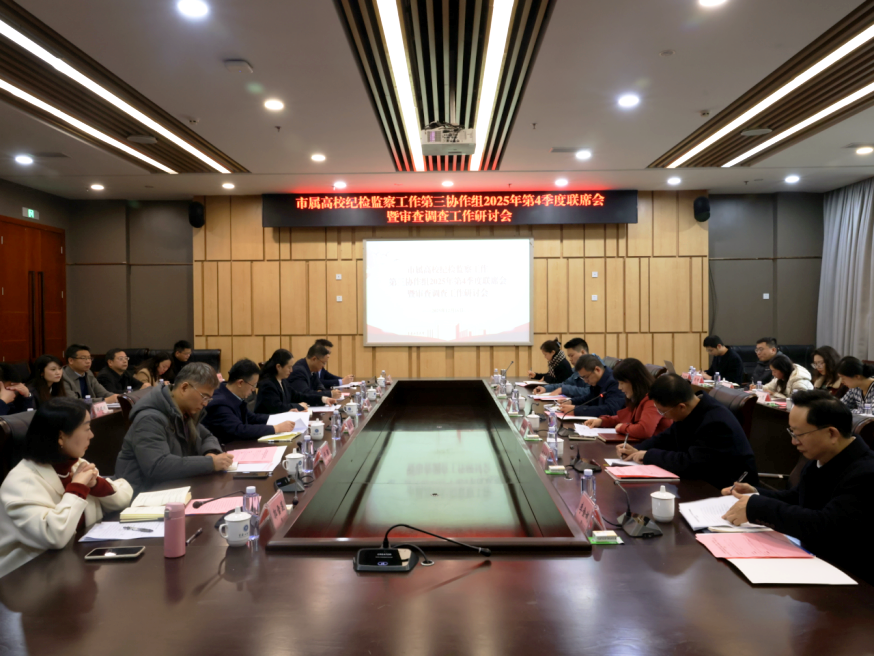 2025年12月16日,市属高校纪检监察工作第三协作组2025年第4季度联席会暨审查调查工作研讨会在OK138太阳集团召开,会议由OK138太阳集团党委常委、纪委书记、监察专员张海燕主持。市纪委监委第三监督检查室吴从波主任、封伦同志出席会议,第三协作组各高校纪委书记、分管审查调查工作领导和联络员参加会议。