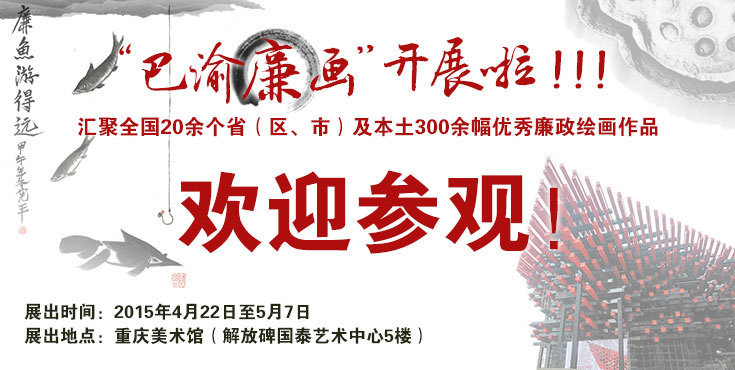 由中共重庆市纪委、重庆市文化委主办,新华网重庆频道、重庆市群众艺术馆、重庆美术馆承办,重庆市漫画家协会协办的“巴渝廉画”征集展览活动,将于4月22日至5月7日在解放碑重庆美术馆开展。届时,来自全国23个省区的300余件作品将于观众见面。此次展览也是重庆直辖以来首次举行的市级廉政绘画主题展。