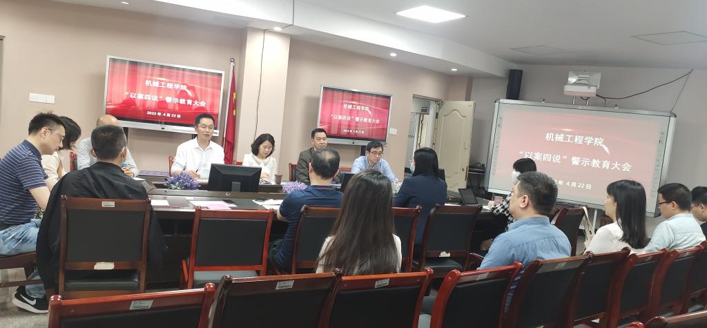 2022年4月22日上午,机械工程学院纪委在慧智楼90709学院会议室召开“以案四说”警示教育大会,学院班子、各系和实验室及工程中心负责人、行政人员及全体辅导员参加了教育大会。会议由学院党委副书记、纪委书记陈春洁主持。
