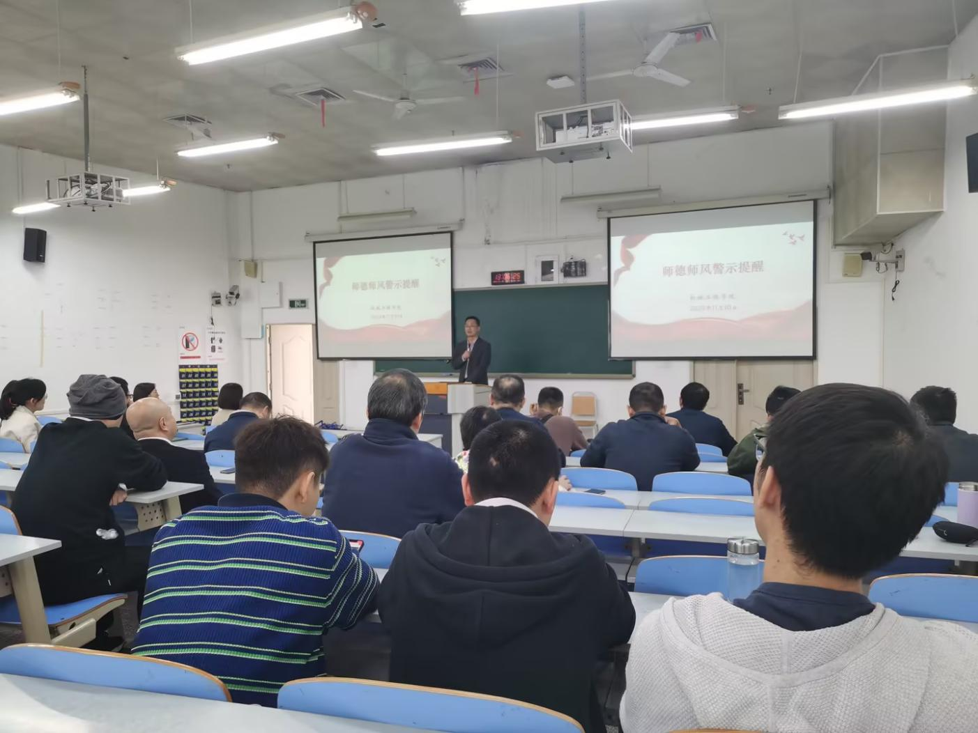 11月10日下午,机械工程学院在慧智楼90308教室召开师德师风警示教育教职工大会。会议由学院党委书记杨娟主持,学院全体教职工参加会议。
