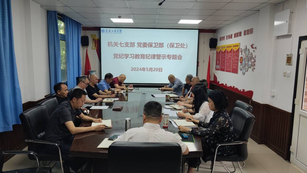 5月20日上午,机关七支部、党委保卫部(保卫处)在党员活动室召开了党纪学习教育警示教育专题会。支部党员、保卫干部、安保大队队长和副队长参加了会议,会议由支部书记、党委保卫部部长(保卫处处长)沙云主持。